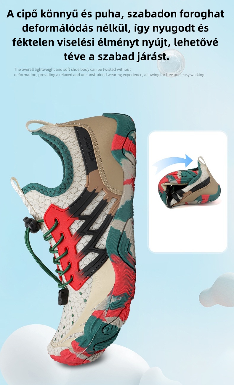 ✓ Széles lábujjrész – Növeli a láb rugalmasságát és erejét.