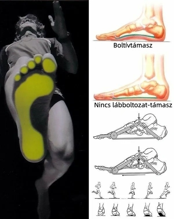- Ez a speciálisan kialakított rugalmas szerkezet megtámasztja a láb boltozatát, javítja a stabilitást és csökkenti az izomfáradtságot.